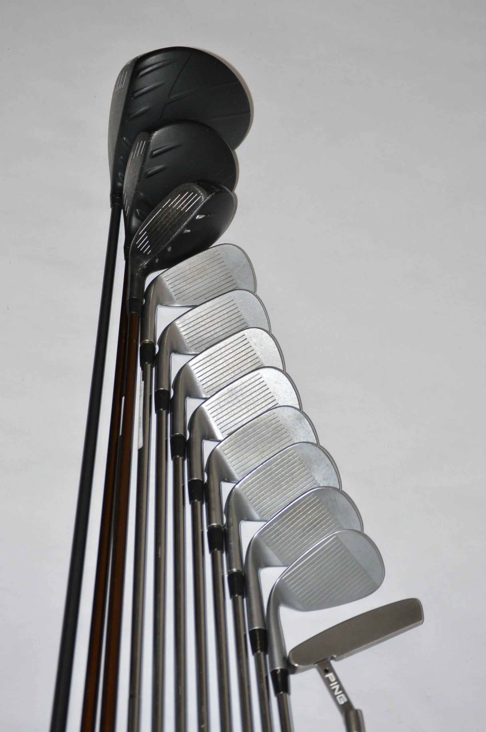 Full set includes Ping G400 Max 9 degree driver, Ping G400 16 degree of 3 wood, Ping G400 22 degree 4 hybrid, Ping i210 5-PW, Ping Glide 2.0 52.12 degree wedge, Ping Glide 56 degree, & Ping Anser 35 in putter. Irons are in Great condition with minimal wear to head and face. Shafts are Ping AWT 2.0in R-Flex with Golf Pride Tour Velvet grips. Item #: 6441